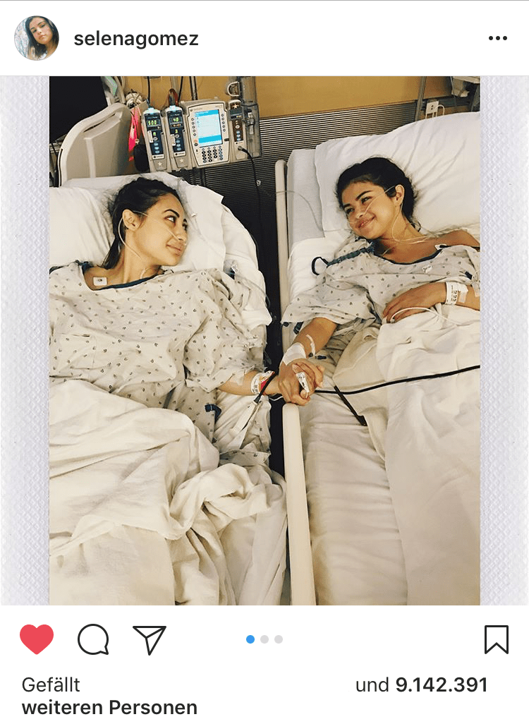 Das bringt mich wieder zu Selena Gomez, die mit ihrer Krankheitsgeschichte offensiv an die Öffentlichkeit ging. Nun wurde sie vor Kurzem nierentransplantiert. Dafür hat sie eine Spenderniere von ihrer besten Freundin bekommen. Einen größeren Freundschaftsbeweis kann es wohl kaum geben. Die Tragweite ist für mich als selbst Transplantierte noch viel deutlicher spürbar.