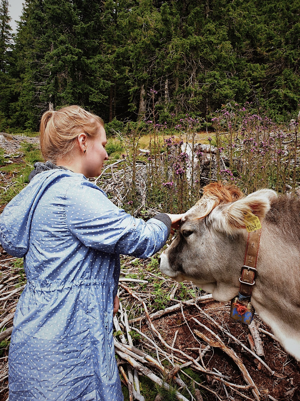 Wir fütterten Wild (es war das Hoteleigene Wild und wir waren mit den Besitzern gemeinsam da, bitte kein freilaufendes Wild einfach so füttern, okay? Danke.) Christian und ich konnten außerdem beim Wandern Kühe und Ziegen streicheln, die uns außerdem ein bisschen abschleckten.