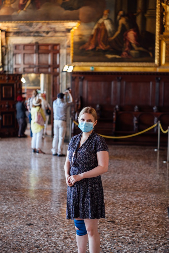 Anyways.. Ich brauchte also schon wieder dringend Urlaub und da wir im April 2020 nach Venedig wollten und das wegen Corona natürlich nicht konnten, haben wir es jetzt nachgeholt. Ich bin mir nicht so sicher, mit welchen Erwartungen ich an den Urlaub heran gegangen war. Ich schätze mal „Ja, Städteurlaub, tausend Kilometer am Tag, klingt ziemlich anstrengend.“ Aber, nach dem glorreichen Sturz beim Wandern im letzten Urlaub (habe ich schon mal erwähnt, dass geradeaus zu laufen nicht zu meinen Stärken zählt?) hatte ich nun auch noch ein kaputtes Knie. Und da Venedig nunmal Venedig ist, gibt es auch noch eintausend Stufen, die ich jeden Tag bewältigen musste. Ausgestattet mit einer todschicken neuen Kniebandage bin ich dann also los, wortwörtlich eine Stufe nach der anderen.