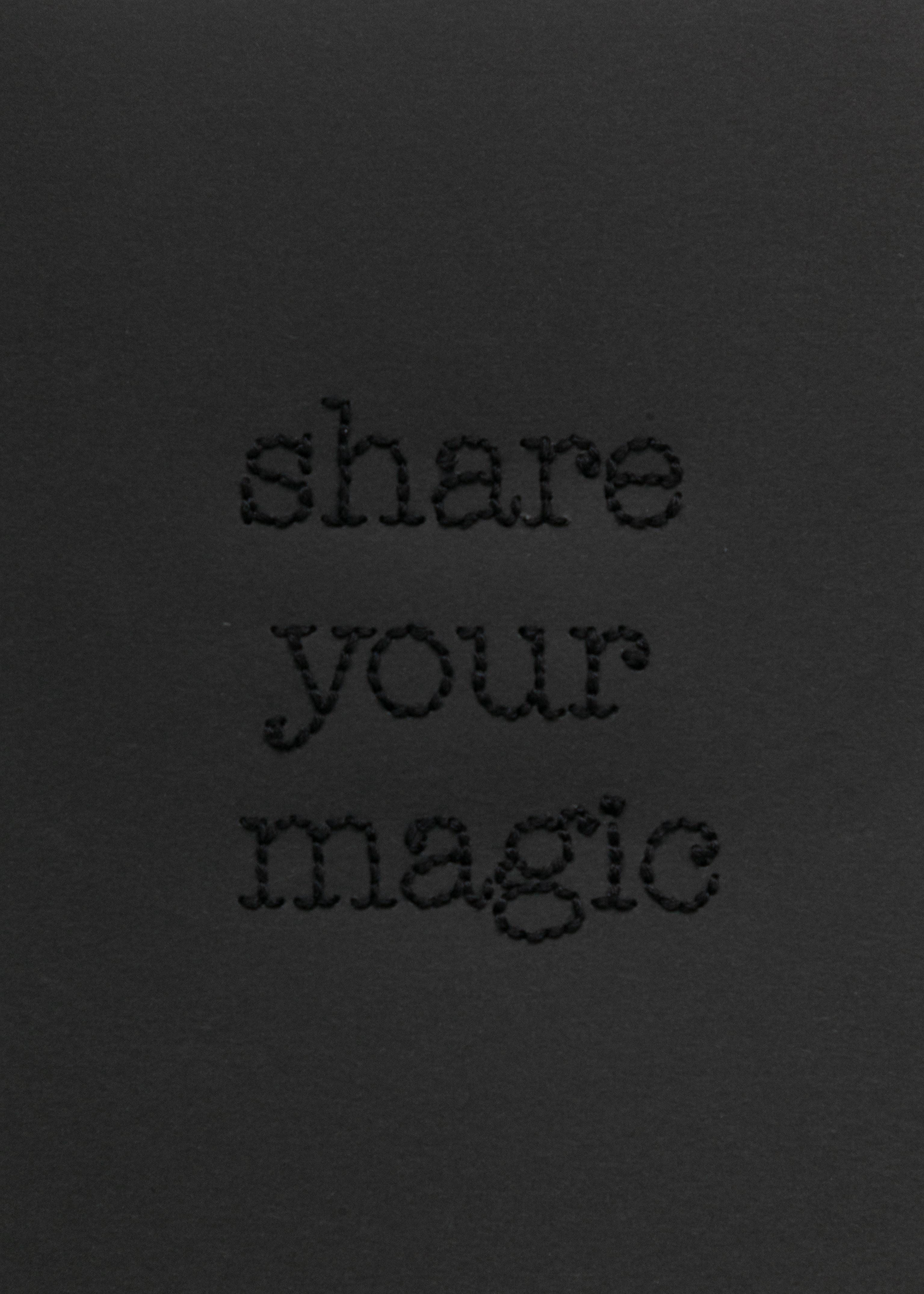 Stickkarte „share your magic“, A5, schwarz, ohne Rahmen, Versand inklusive